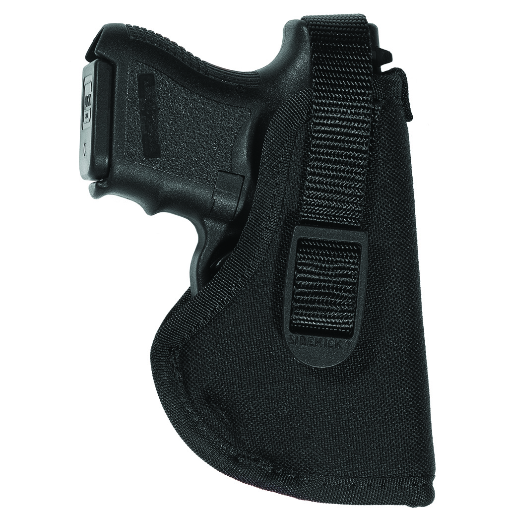 Uncle Mike’s Sidekick OWB Hip Holster. Size 12 for Glock 26/27 and sub-compact pistols. Right hand. Black nylon construction